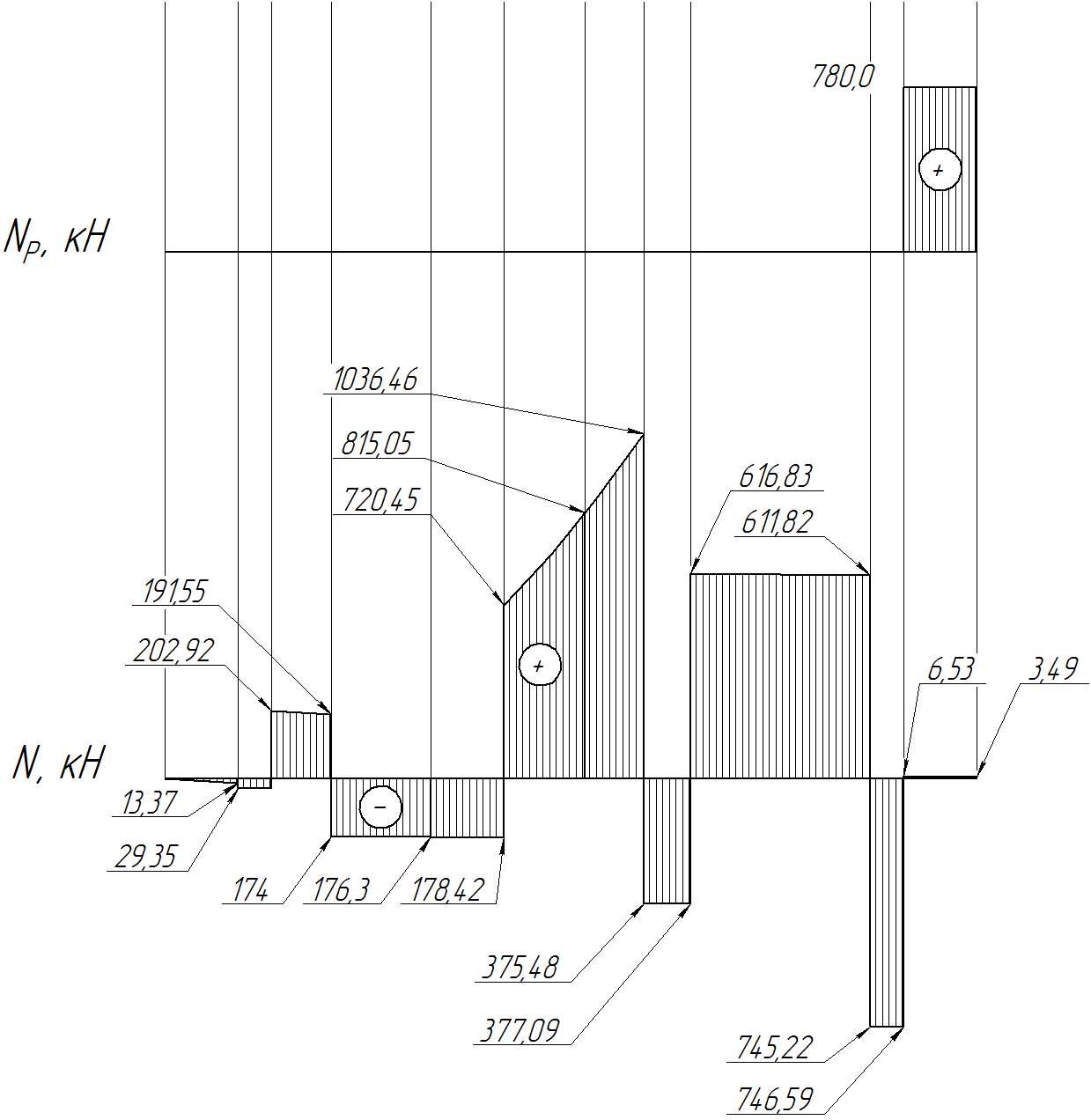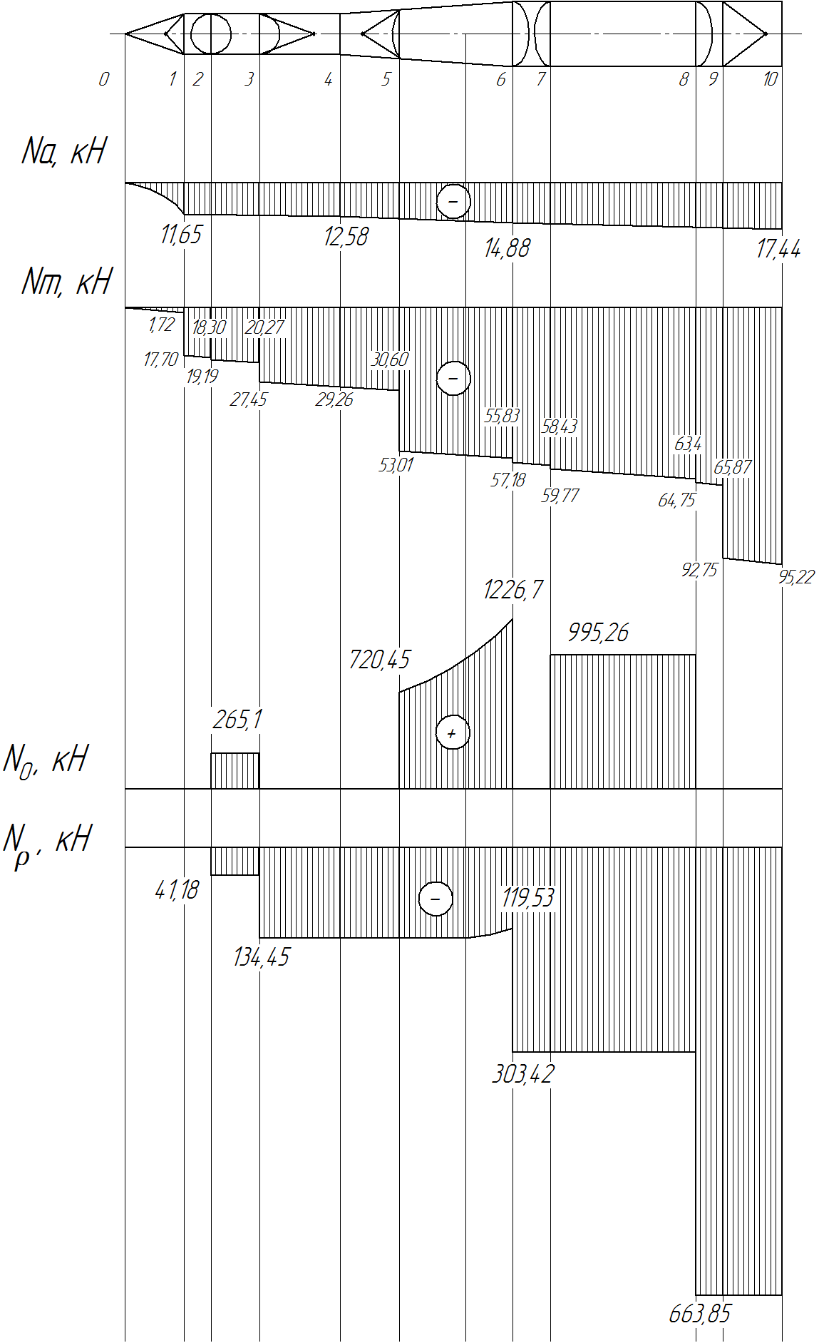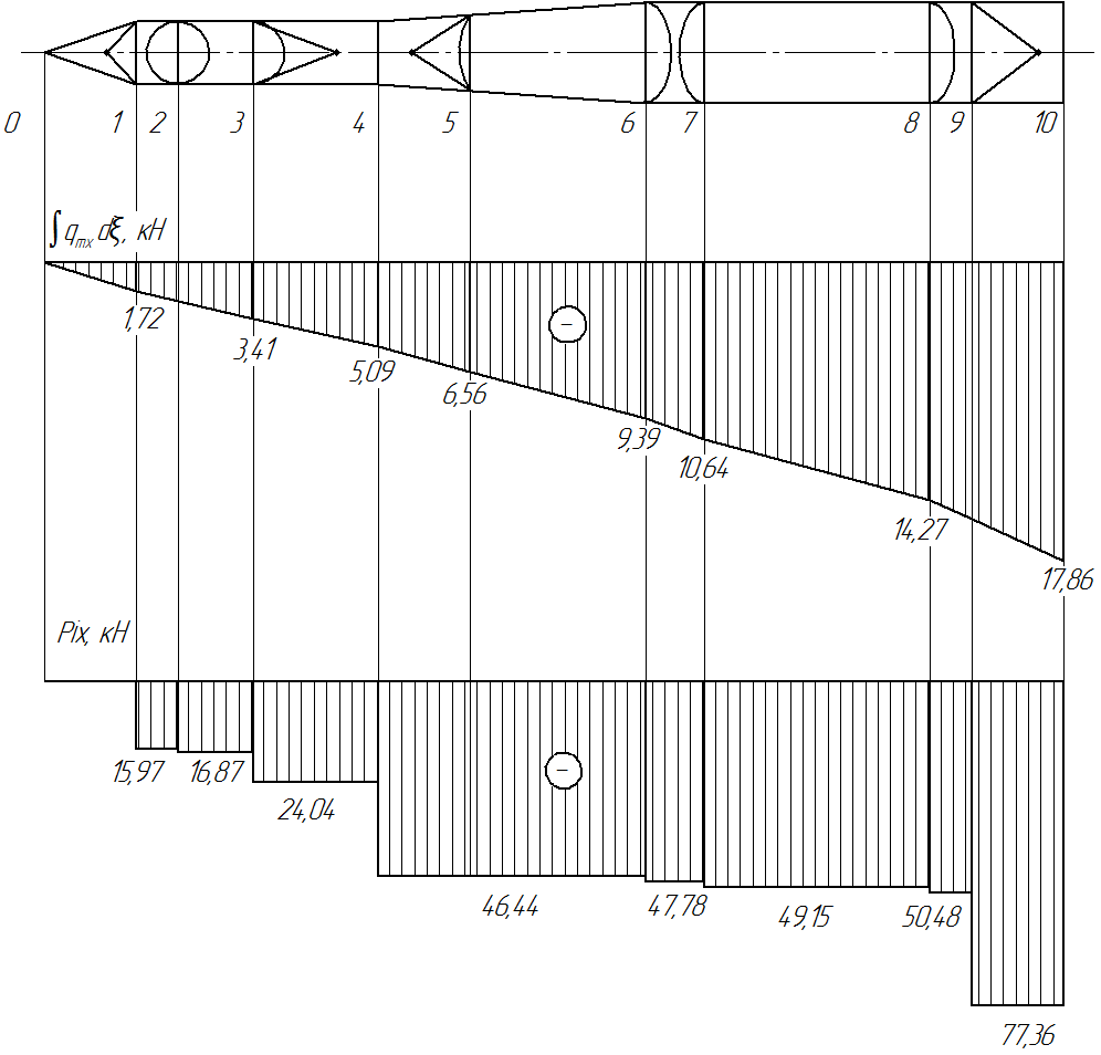 Так как все баки имеют цилиндрическую форму, усилия на переднем и заднем шпангоутах будут одинаковыми, отличаясь лишь знаком.