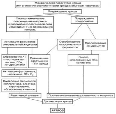 приведенные данные, можно представить схему патогенеза остеоартроза в следующем