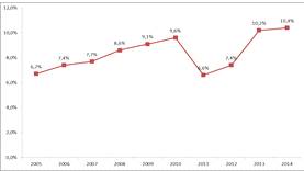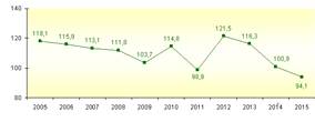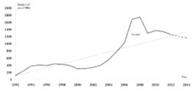 существенно снизились по сравнению с 2013 годом, что обусловлено волной