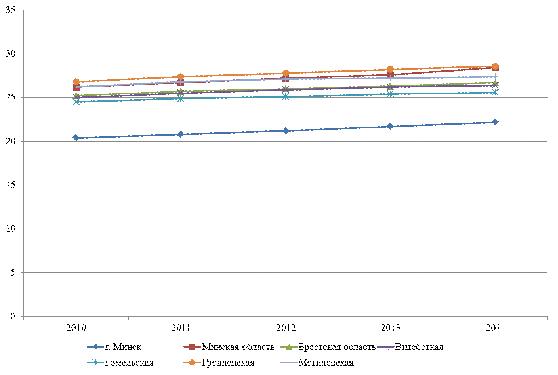 данные рисунка 3.1 [33, с. 290], в Минске с 2011 года на 1000 жителей было