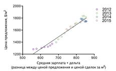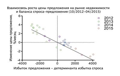 Рисунок 3.6 - Взаимосвязь цены предложения на рынке недвижимости и баланса спроса и предложения