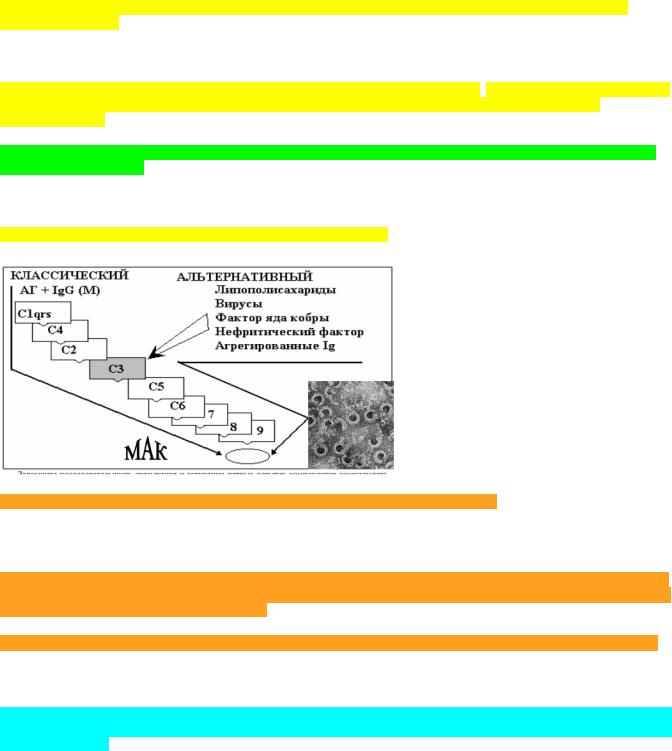 Существует два основных пути активации комплемента, приводящих к лизису клеток. Первый путь - КЛАССИЧЕСКИЙ, через каскадную активацию С1q, C1r, C1s, C4, C2 c последующим вовлечением центрального компонента комплемента - С3.