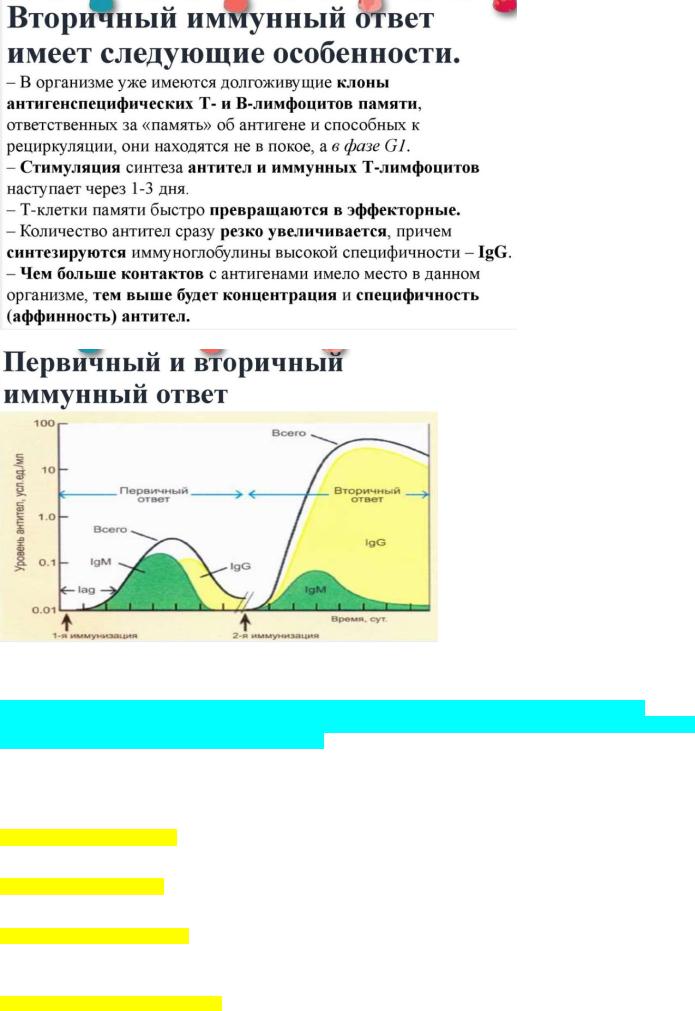 Вторичный иммунный ответ развивается после повторного контакта с тем же антигеном и имеет следующие особенности.