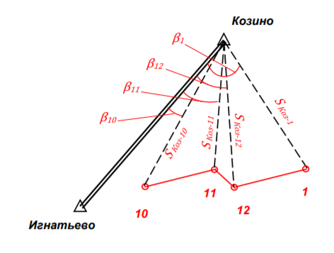 Из ранее проведенных вычислений выписать в таблицу 3.1.1 значения координат Xi ; Yi пунктов ГГС Козино, Игнатьево и точек 1, 10, 11, 12;