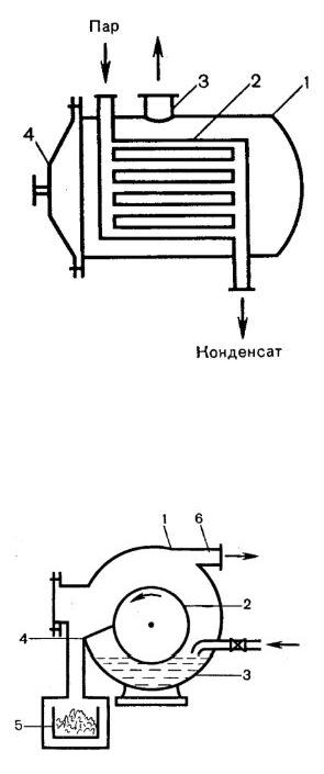 плиты вводится греющий глухой пар, снизу отводится конденсат. На предварительно прогретые плиты размещают противни с высушиваемым материалом слоем 20—60 мм или плоские чашки со сгущенной вытяжкой. Шкаф закрывают крышкой (4) и включают вакуумный насос. Образующиеся водяные пары удаляются через патрубок (3) в конденсатор. Длительность сушки около 4 ч при температуре 50—60 °С. По окончании сушки прекращают подвод пара, дают остыть, выравнивают давление. Высушенный материал снимают с противней и измельчают. Вакуум-сушильные шкафы используют преимущественно в малотоннажных производствах.