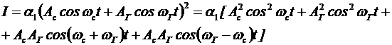 где Ас, Аг, ωс, ωг - амплитуды и частоты волн исследуемого источника и гетеродина.