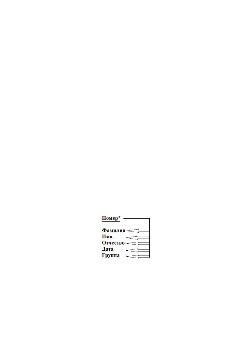 Пример графического изображения функциональных зависимостей реквизитов Студент показан на рисунке далее, на котором ключевой реквизит указан *.