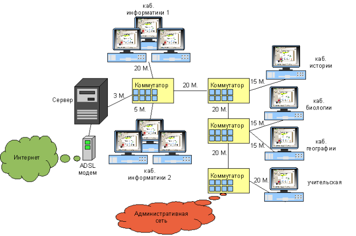 В організації є вже існуюча мережа з виділеним сервером , що об'єднує комп'ютери в кабінетах інформатики .