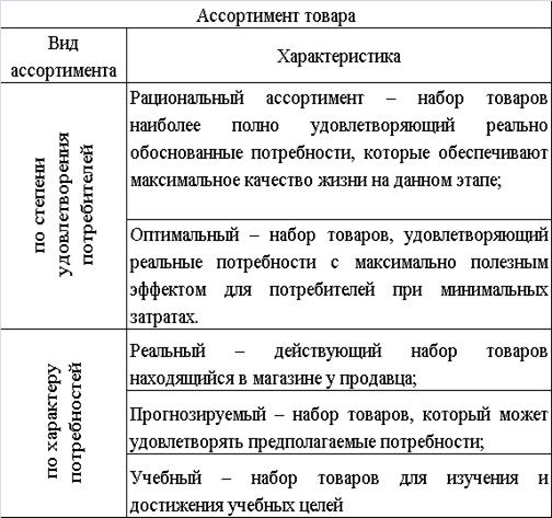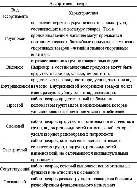 Под ассортиментом товара подразумевается потребительская продукция, объединенная по определенным видам, разновидностям и признакам.