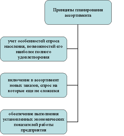 Главным принципом при формировании асоортимента товара должен выступать учет обеспечения этого ассортимента соответствию характеру спроса населения. Кроме того, формирование ассортимента должно учитывать пожелание покупателей в данном сегменте рынка товаров, поэтому весь предлагаемый ассортимент должен быть достаточно широк и глубок, что может быть определено разнообразной численностью ассортиментных групп по каждому наименованию товара.