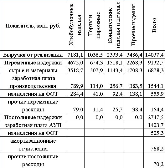 плана по ассортименту хлебобулочных изделий представлено в табл.7.