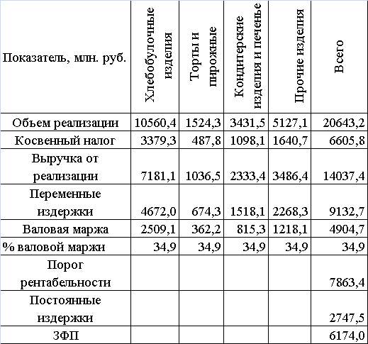 При таких условиях запас финансовой прочности (ЗФП) предприятия ЗАО «Хлеб» составляет: