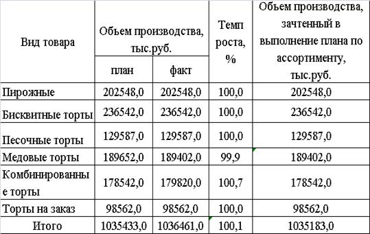 Выполнение плана по ассортименту тортов и пирожных представлено в табл.8