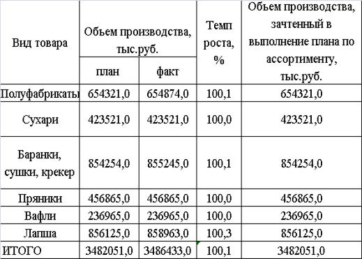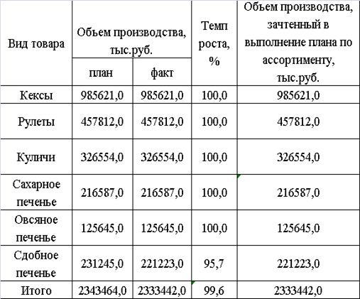 План по ассортименту кондитерских изделий и печенья ЗАО «Хлеб» в 2013 году выполнен, несмотря на незначительное отклонение от плана.