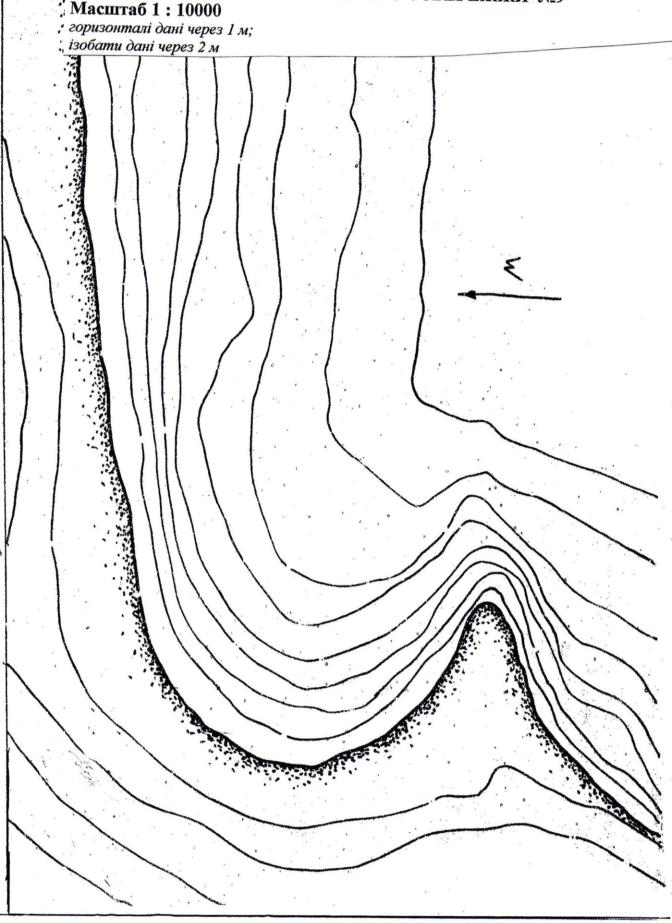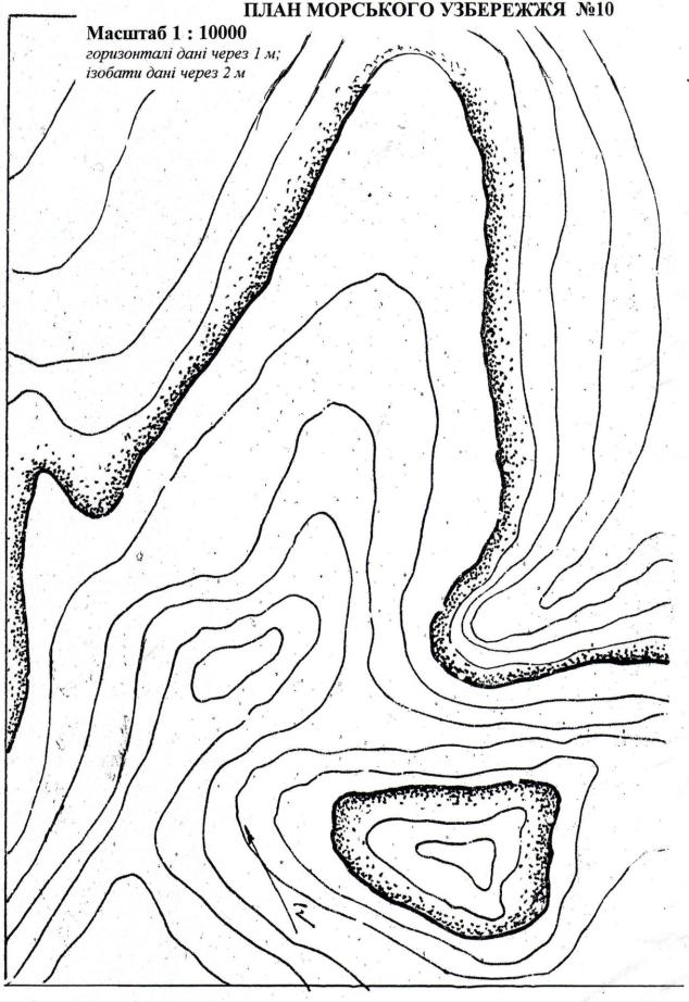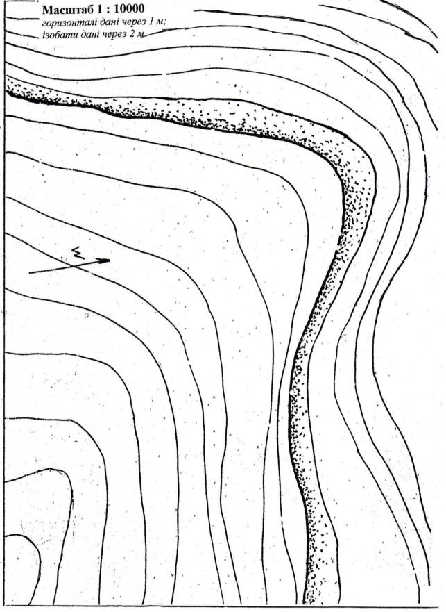Масштаб 1:10000; горизонталі – через 1 м; ізобати – через 2 м.