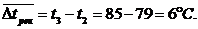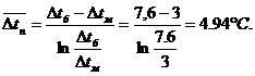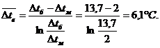 Средний температурный напор в секции рекуперации при характерной для нее постоянной разности температур