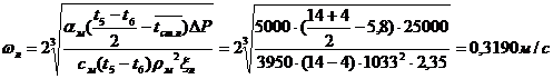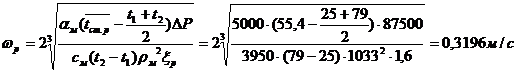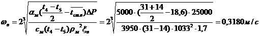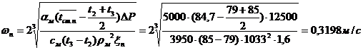 Скорость холодной воды принимаем равной скорости