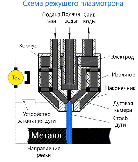 разрезаемого металла за счет теплоты, генерируемой сжатой плазменной дугой, и