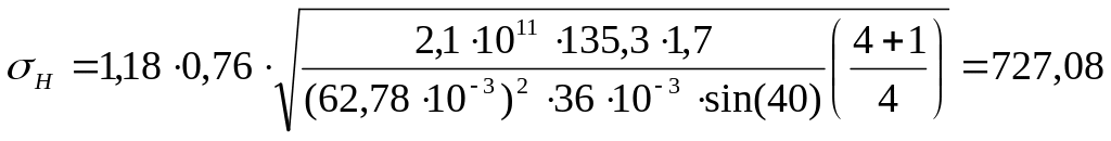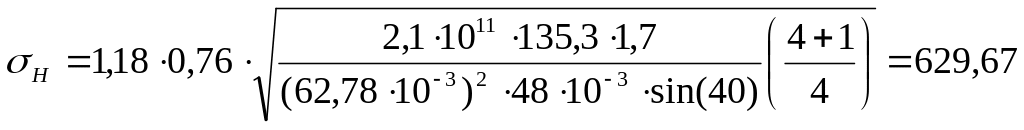 Проверочный расчёт передачи по контактным напряжениям выполняем по формуле: