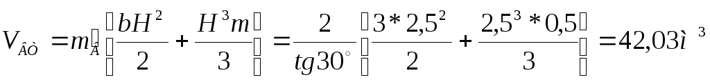 где m`В и m – коэффициенты заложения откосов соответственно дна траншеи и котлована; b – ширина въездной траншеи по дну; Н – глубина котлована.