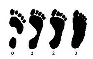 Особенность скелета детской стопы - ее радиальная, лучевая форма (т.е. она наиболее широка на концах пальцев, а не на уровне пучков плюснефаланговых суставов, как у взрослых).