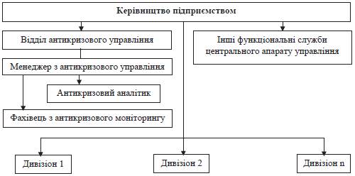 антикризового управління у системі дивізіональної структури управління