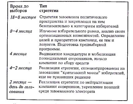методы работы с избирателями. В целом он видит следующие три этапа: 1. Предкампания (18—6 месяцев до выборов).