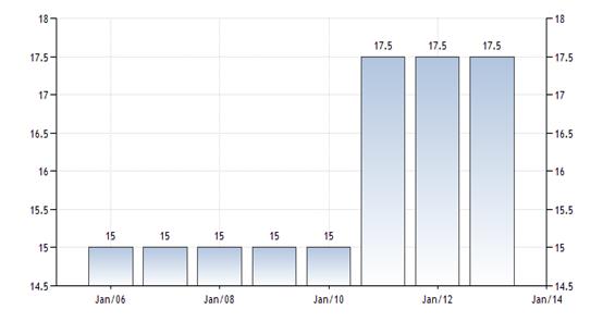 і послуг становить 17.5% (діє із грудня 2010 року). Пільгова ставка ПДВ в 8.75%