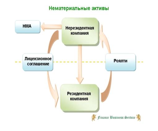 У міжнародній практиці досить поширене використання закордонних, насамперед офшорних, компаній для володіння інтелектуальною власністю (авторські права, патенти, товарні знаки й т.п.).