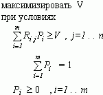 Обратим внимание на то, что при увеличении элементов матрицы R на любую константу С цена игры увеличится на С и это изменение не окажет влияния на искомые вероятности выборов. Таким образом, можно добиться, например, положительности элементов матрицы и, следовательно, цены игры. Поэтому можно допустить, что цена игры V положительна.