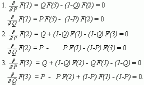 уравнений для поиска оптимальных значений P(A), Q(A):