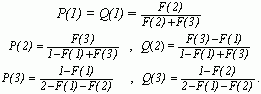 и(1)=0.41, P(2)=0.5, P(3)=0.59, Q(1)=0.41,
