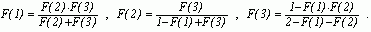 Решая полученную нелинейную систему, имеем оценки(1)=0.3, F(2)=0.5, F(3)=0.7