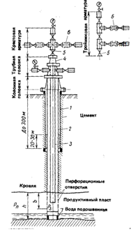- колонна кондуктора; 2 - эксплуатационная колонна; 3 - колонна фонтанных