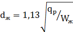 Скорость жидкости (принимаем) Wж = 1 м/c