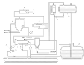 8 - замерная емкость; 9 - расходная емкость, 10 - подземная емкость для