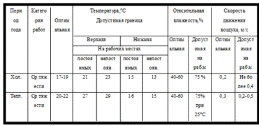 Таблица 4.7. Нормы температур, относительной влажности и скоростей воздуха в рабочей зоне помещений