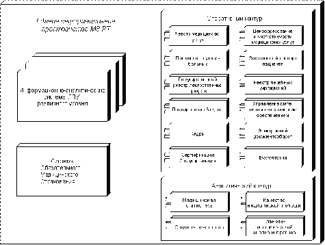 Аналитический контур включает подсистемы медицинской статистики, сводной отчетности, финансового анализа и прогноза, позволяющие проводить анализ планово-экономической деятельности ЛПУ и МЗ РТ по различным показателям для принятия соответствующих управленческих решений на основе информации других подсистем ИАС МЗ РТ и ИСУ ЛПУ, анализировать исполнение планов и смет, эффективно управлять финансово-материальными потоками, прогнозировать направление лечебной деятельности ЛПУ на основе статистических данных, формировать среднесрочные и долгосрочные планы ЛПУ, МЗ РТ, экономически обоснованно перепрофилировать, реорганизовывать ЛПУ и определять потребность финансовых, материальных и кадровых ресурсов, экономически обоснованно планировать госзаказ и распределение квот специализированным ЛПУ, динамически в автоматизированном режиме определять отклонения от контрольных цифр и показателей и своевременно принимать управленческие решения по повышению эффективности лечебной деятельности ЛПУ в масштабах региона. Реализация вышеперечисленных подсистем выполняется на базе единых программно-аппаратных средств с созданием АРМов структуре МЗ РТ.