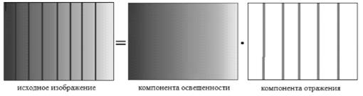 Любое изображение можно представить, как произведение высокочастотного сигнала (отражение - R) и низкочастотного сигнала (освещенность - I) [19].