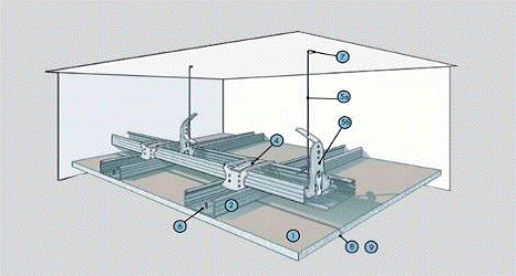 Применяется в помещениях различного назначения, как при реконструкции, так и в новом строительстве с целью: отделки, решения конструктивно-планировочных задач, устранения неровностей перекрытия, скрытого размещения инженерных коммуникаций, повышения звукоизоляции перекрытий, акустики, повышения огнестойкости перекрытий и покрытий.