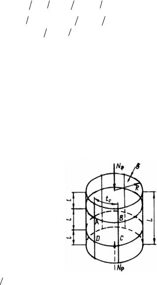 Обозначим через N0 силу, действующую на оболочку, a Nc – силу, действующую на один из n стрингеров, подкрепляющих оболочку в осевом направлении. Тогда из условия равновесия отсека, сжатого осевой силой Np , получаем