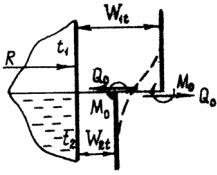 Здесь β – коэффициент температурного расширения материала обечайки; t1, t2 – температура верхней и нижней части обечайки