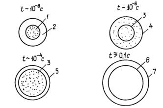 Рис. 18. Схема эволюции ядерного взрыва