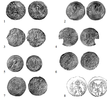 Святополка Окаянного, №179-1; 7 - срібник з ім’ям «ПЕТРОС», №206-1; 8 - срібник