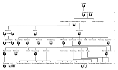 Рюриковичів (генеалогічна схема): 1, 2 - Володимира (Василя) Святославича; 3 -