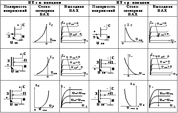 в заключении общую табл. 1 ВАХ и схемы включения ПТ.