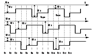 смещение (форма импульсов показана точками на кривой Ua в интервале t4 …t7).