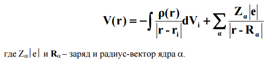 Распространенным и информативным статическим ИРС молекулы является молекулярный электростатический потенциал (МЭП). Его физический смысл следующий. Пусть заряд q1 создает в точке пространства с радиус-вектором r МЭП V(r). Если в эту точку поместить точечный заряд q, то энергия электростатического взаимодействия между зарядом q и зарядом q1 будет равна qV (в одноэлектронном приближении без учета поляризационной составляющей). От электронной задачи, рассмотренной в курсе «Введение в квантовую химию», нам понадобится в дальнейшем электронная плотность ρ(r), рассчитываемая с использованием электронной волновой функции. Последняя ищется в виде детерминанта Слейтера, построенного из одноэлектронных волновых функций – молекулярных орбиталей. Каждая молекулярная орбиталь ϕi есть линейная комбинация базисных функций χµ.с коэффициентами разложения сiµ.: ϕi = Σ.сiµχµ. В каждой точке r пространства внутри и вне молекулы МЭП имеет вид:
