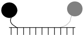 При проведении ПЦР с использованием пробы-«скропиона» на стадии денатурации происходит разъединение амплифицируемого фрагмента. На стадии отжига к одной из цепей присоединяется затравочный праймер пробы- «скропиона» (для упрощения схемы вторая цепь удалена), после чего на стадии элонгации происходит досторойка комплементарной цепи.