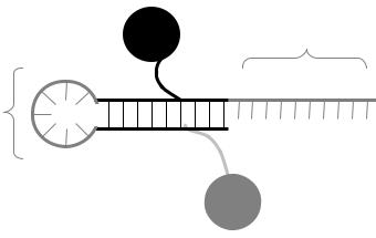 комплементарны друг другу. К одному из этих участков присоединен флуорофор, к другому – гаситель. При образовании между комплементарными участками шпильки флуорофор и гаситель оказываются сближены друг с другом, что проводит к подавлению флуоресценции. Головку «шпильки», расположенную между комплементарными учстками, образует контрольный праймер (рис. 16).